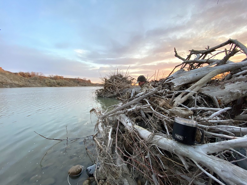 Ramsey Russell: Well, for a flatlander to wade down that goat trail to the river itself and then across those slippery rocks, we got set up a little bit after legal, and we didn’t have too much. We took a half dozen goose decoys and three or four duck floaters, but it worked out beautifully. I would say this morning at sunrise may have been one of the most beautiful mornings of duck hunting I’ve ever experienced. It was just something about being on that Yellowstone River this morning that was beautiful, absolutely gorgeous. Bruce, what’s your story? Where are you originally from and how did this start?