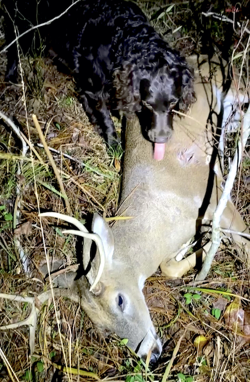 Ramsey Russell: Well, you can hear the bullet here and it wasn’t a gut shot. You could tell it was in the right there where you want to get them right there in the wheelhouse and what I saw, you know, could you get always get a little kickback on that scope. But what I saw, I saw the deer buck, throw his back feet up saw him tucked down, as he was disappearing off the ridge, I noticed he wasn’t like dragging a shoulder, so that looks like a pretty solid hit. But I’m used to really, that’s a 300 magnum I’ve been shooting longer than you are old. I’m going to tell you right now. I got that gun back in 1989. It’s my bell we call it. Back in the day of Telephone Company, my bell, you know, reach out and touch somebody. And I’m really used to when I touch that trigger off, I don’t shoot at a bunch a couple of trigger pulls a year, but I’m used to just seeing white belly staring back at me through the scope when it settles down. And he hopped over. He didn’t go far, so then you see it. Well, I’m going to get Caleb and Whelan. I said, well, I met Caleb, but who’s Whelan? Which ones Whelan? He goes the middle sized dog? I said, oh, so you show up with a Boykin and I ain’t never seen a blood trail in Boykin. Not that we had a trail far it didn’t go with about 70 – 80 yards, but you know, he ran up in the woods and he come back out looking at you.