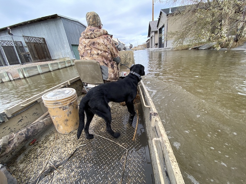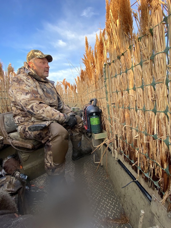 Ramsey Russell: It does. It’s very convenient hunting to walk in, suit up, step into your boat, roll up the garage door, ease it down into the water, crank it up, motor off and come back, put it right up into the rollers, wench it back up, un-suit, and now record a podcast. It’s as easy and convenient of hunting as I’ve ever seen, absolutely first class.