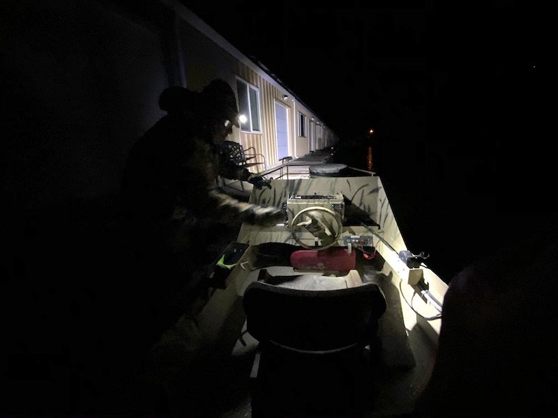 Jack Ray: Yeah, my boat is 14 ft. long. When they originally started building the boats, they were about 11.5 ft., I think. They were a little smaller back then and they had smaller short shaft outboard motors. Jess Johnson was a master aluminum welder. His father used to build duck boats and he built them back when they built them out of steel and wood and canvas and different things, but those would break down over time. I think Jess’s desire was to build something that was more functional, more durable, and could also be used as a stable shooting platform so that people could shoot out of it.