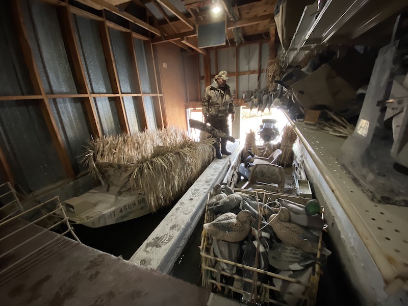 We pulled into this camp. Nice, neat, organized, tidy. You’ve got prefab metal buildings. You open up the door and it opens into this little mud room, a nice mud room with a couch and a chair and taxidermy and maps. You go right into a dry boat slip. I’ve seen that at the Chesapeake Club with a dry boat slip, at the new State Club, they had a wet slip, but it’s unbelievable. It’s behind door one, it’s a duck blind. You climb into these little boats, these custom built little Utah duck club boats. I’ve seen them at all three camps. Everybody seems to use them and going into the marshes is convenient. Even the blind design is perfect for y’all’s situation. What are the origins of that boat? Who made them? How did it come to be? How did it come to be so prevalent in these camps out here?