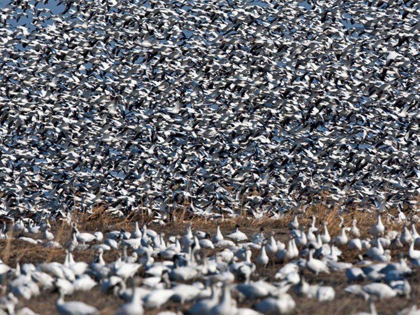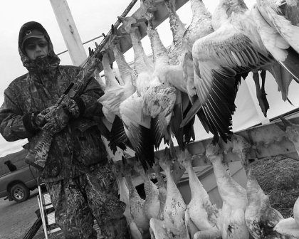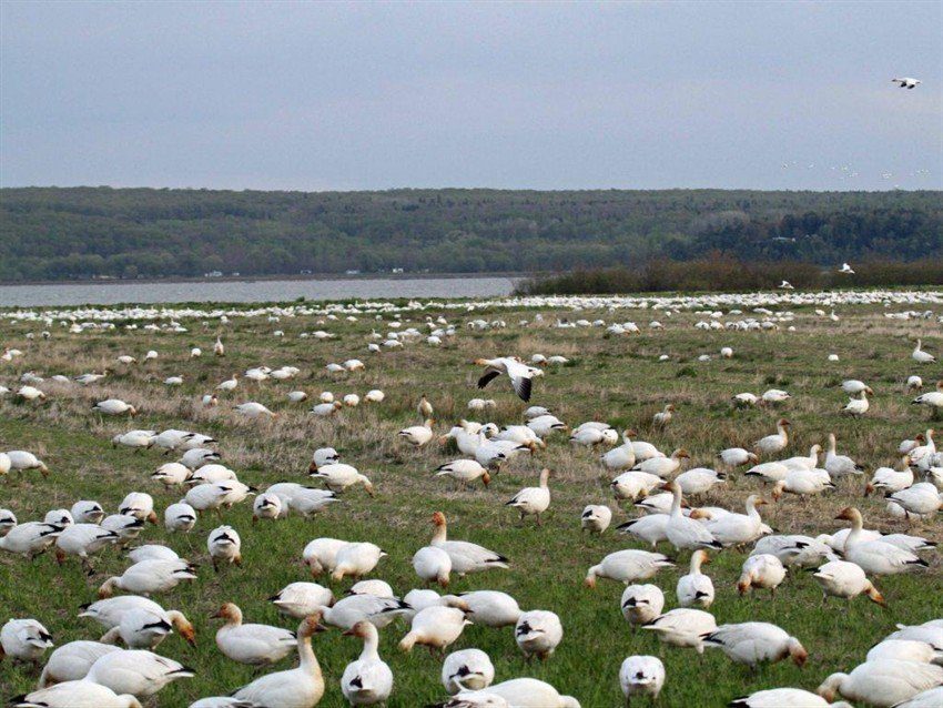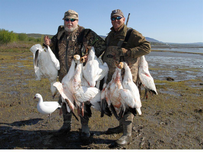 Quebec Canada GREATER snow goose hunting in the narrow St. Lawrence River corridor through which the entire world population migrates twice annually.